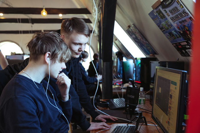 Gamerkulturen på Skamling skal mærkes på egen krop! Fællesskabet omkring spiludvikling dyrkes i allerhøjeste grad – både i og uden for undervisningen. Vi ser med på E3, når der lanceres nye spil eller konsoller, samles på trappen til et spil Super Smash Brothers eller nørder med arkademaskiner.