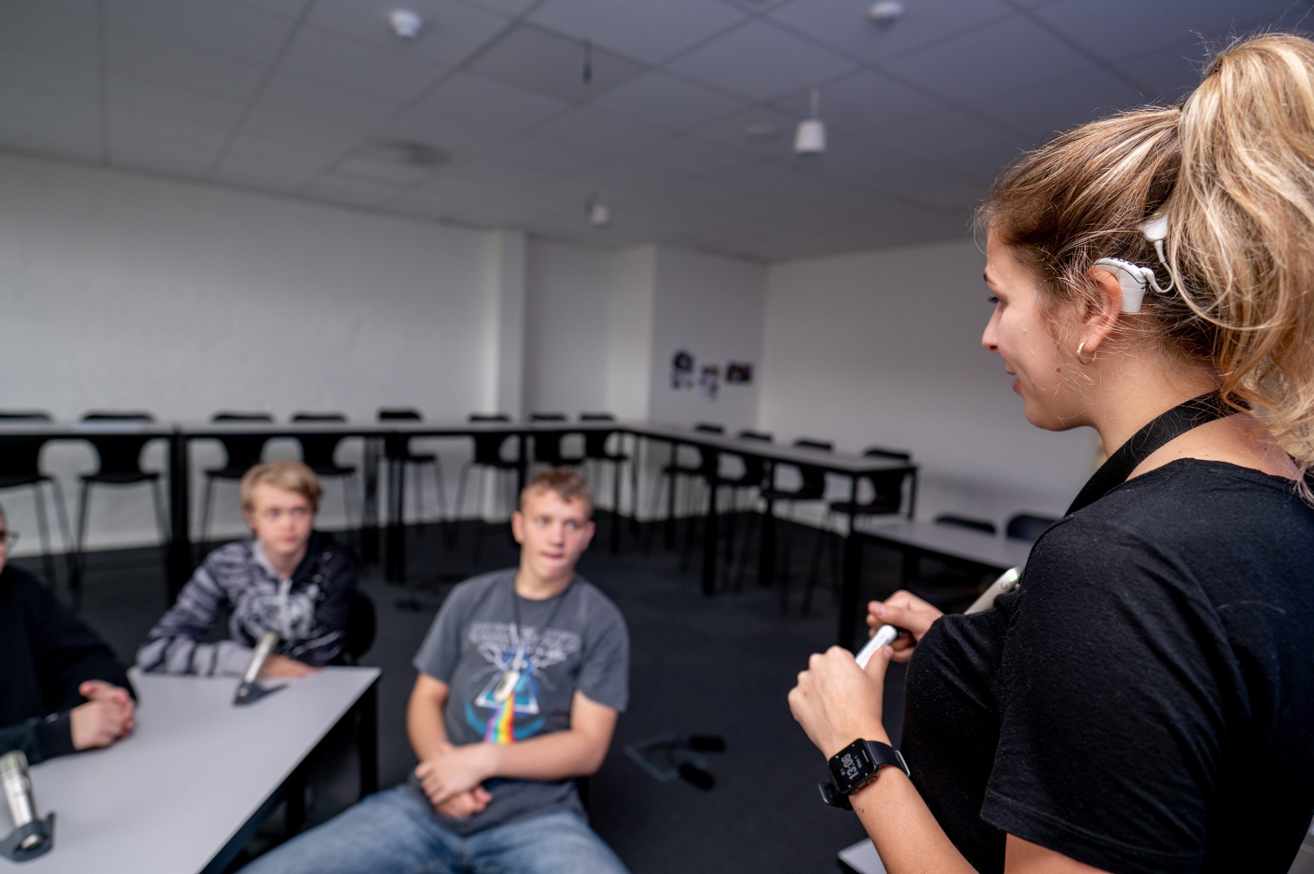 Når man har et høretab, kan der opstå mange udfordringer – både fagligt og socialt. Katrine Brixen er tale-/høreansvarlig for eleverne med høretab, og hun har ikke svært ved at sætte sig ind i de udfordringer, elever bøvler med. Hun har nemlig selv et høretab og arbejder hver dag for at hjælpe eleverne med at finde balancen mellem at være en elev med høreudfordringer – og en efterskoleelev som alle andre.